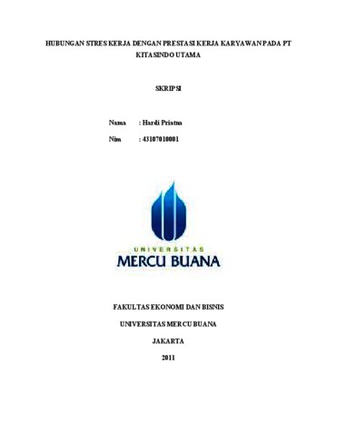 PRIATNA, HARDI (2011) HUBUNGAN STRES KERJA DENGAN PRESTASI KERJA KARYAWAN PADA PT KITASINDO UTAMA. S1 thesis, Universitas Mercu Buana Jakarta.