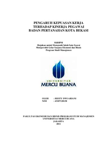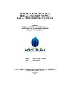 ARIANI, HESTY DWI (2011) PENGARUH KEPUASAN KERJA TERHADAP KINERJA PEGAWAI BADAN PERTANAHAN KOTA BEKASI. S1 thesis, Universitas Mercu Buana Jakarta.