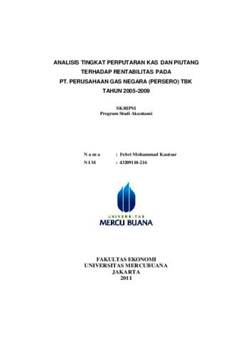 KAUTSAR, FEBRI MOHAMMAD (2011) ANALISIS TINGKAT PERPUTARAN KAS DAN PIUTANG TERHADAP RENTABILITAS PADA PT. PERUSAHAAN GAS NEGARA (PERSERO) TBK TAHUN 2005-2009. S1 thesis, Universitas Mercu Buana Jakarta.