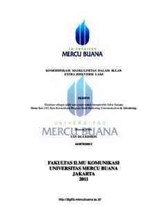 EDMON, YAN DUA (2011) KOMODIFIKASI MASKULINITAS DALAM IKLAN TELEVISI (TVC) EXTRA JOSS VERSI LAKI. S1 thesis, Universitas Mercu Buana Jakarta.