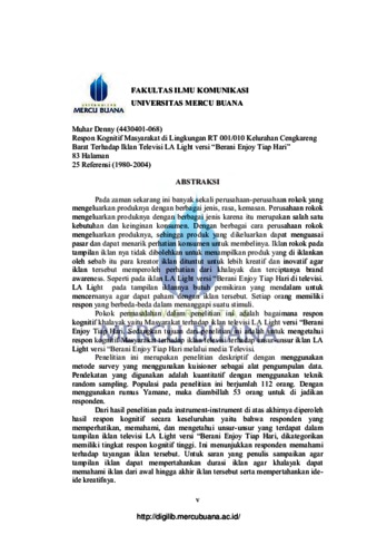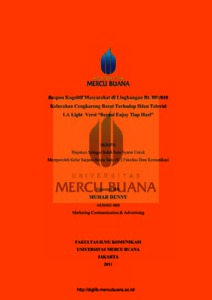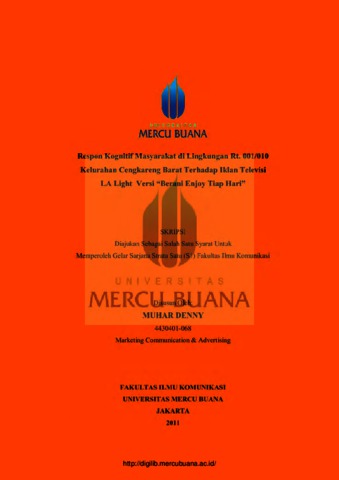 DENY, MUHAR (2011) RESPON KOGNITIF MASYARAKAT DI LINGKUNGAN RT. 001/010 KEL. CENGKARENG BARAT TERHADAP IKLAN TELEVISI LA LIGHT VERSI " BERANI ENJOY TIAP HARI". S1 thesis, Universitas Mercu Buana Jakarta.