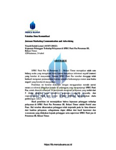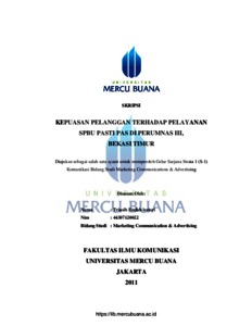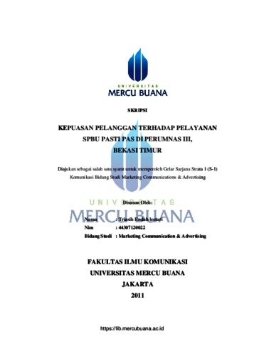 LESTARI, TRIASIH ENDAH (2011) KEPUASAN PELANGGAN TERHADAP PELAYANAN SPBU PASTI PAS DI PERUMNAS III, BEKASI TIMUR. S1 thesis, Universitas Mercu Buana Jakarta.
