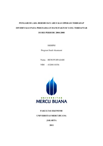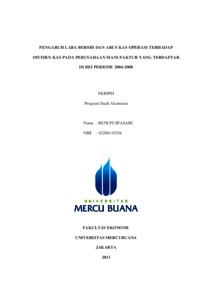 PUSPASARI, RENI (2011) PENGARUH LABA BERSIH DAN ARUS KAS OPERASI TERHADAP DIVIDEN KAS PADA PERUSAHAAN MANUFAKTUR YANG TERDAFTAR DI BEI PERIODE 2004-2008. S1 thesis, Universitas Mercu Buana Jakarta.