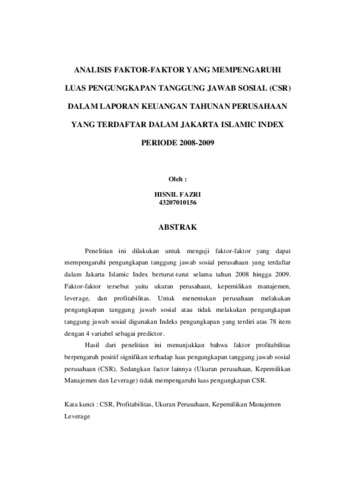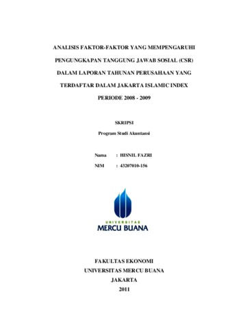 FAZRI, HISNIL (2011) ANALISIS FAKTOR-FAKTOR YANG MEMPENGARUHI PENGUNGKAPAN TANGGUNG JAWAB SOSIAL (CSR) DALAM LAPORAN TAHUNAN PERUSAHAAN YANG TERDAFTAR DALAM JAKARTA ISLAMIC INDEX PERIODE 2008 - 2009. S1 thesis, Universitas Mercu Buana Jakarta.