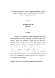 | Uncontrolled Keywords: | Wajib Pajak, Pemeriksaan Pajak, Kepatuhan Wajib Pajak |