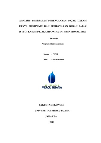 PIPIT, PIPIT (2011) ANALISIS PENERAPAN PERENCANAAN PAJAK DALAM UPAYA MEMINIMALKAN PEMBAYARAN BEBAN PAJAK (STUDI KASUS: PT. AKASHA WIRA INTERNATIONAL,TBK). S1 thesis, Universitas Mercu Buana Jakarta.
