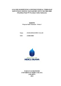 SALAM, MUHAMMAD IBNU (2011) ANALISIS KOMPETENSI AUDITOR INTERNAL TERHADAP KEPATUHAN SISTEM MANAJEMEN MUTU ISO 9001:2008 (Penelitian Pada PT Prysmian Cables Indonesia). S1 thesis, Universitas Mercu Buana Jakarta.