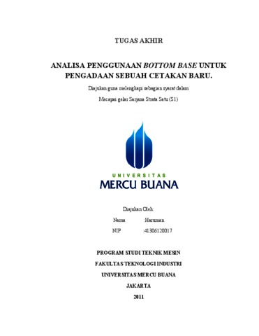 HARUMAN, HARUMAN (2011) ANALISA PENGGUNAAN BOTTOM BASE UNTUK PENGADAAN SEBUAH CETAKAN BARU. S1 thesis, Universitas Mercu Buana Jakarta.