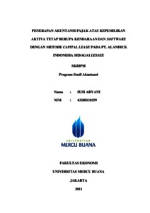 ARYANI, SUSI (2011) PENERAPAN AKUNTANSI PAJAK ATAS KEPEMILIKAN AKTIVA TETAP BERUPA KENDARAAN DAN SOFTWARE DENGAN METODE CAPITAL LEASE PADA PT. ALANDICK INDONESIA SEBAGAI LESSEE. S1 thesis, Universitas Mercu Buana Jakarta.