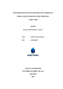 VISTARANI, NADIA VIOLETTA (2011) PENGARUH PENGUMUMAN BOND RATING TERHADAP HARGA SAHAM DI BURSA EFEK INDONESIA TAHUN 2009. S1 thesis, Universitas Mercu Buana Jakarta.