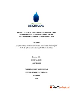 SARI, KURNIA (2011) AKTIVITAS PUBLIKASI HUMAS BADAN PENGKAJIAN DAN PENERAPAN TEKNOLOGI (BPPT) DALAM MELAKSANAKAN PAMERAN TEKNOLOGI 2010. S1 thesis, Universitas Mercu Buana Jakarta.