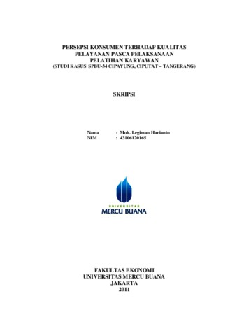 | Uncontrolled Keywords: | Persepsi Konsumen Mengenai skill karyawan pasca pelatihan dan persepsi konsumen terhadap kualitas pe |