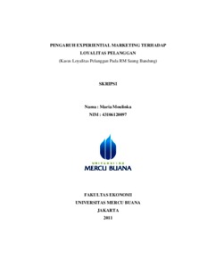 MOULINKA, MARIA (2011) PENGARUH EXPERIENTIAL MARKETING TERHADAP LOYALITAS PELANGGAN (Kasus Loyalitas Pelanggan Pada RM Saung Bandung). S1 thesis, Universitas Mercu Buana Jakarta.
