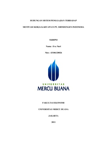 NURI, EVA (2011) HUBUNGAN SISTEM PENGGAJIAN TERHADAP MOTIVASI KERJA KARYAWAN PT. SHINDENGEN INDONESIA. S1 thesis, Universitas Mercu Buana Jakarta.