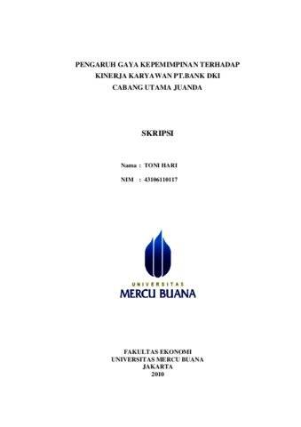 HARI, TONI (2011) PENGARUH GAYA KEPEMIMPINAN TERHADAP KINERJA KARYAWAN PT. BANK DKI CABANG UTAMA JUANDA. S1 thesis, Universitas Mercu Buana Jakarta.