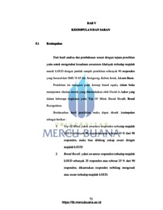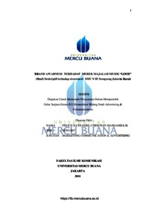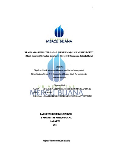 H., FELICE NATHANIEL CHRISTIAN MARGANDA. (2011) BRAND AWARNESS TERHADAP MEREK MAJALAH MUSIK "LOUD" (Studi Deskriptif Terhadap Siswa/Siswi SMU N 85 Srengseng Jakarta Barat). S1 thesis, Universitas Mercu Buana Jakarta.