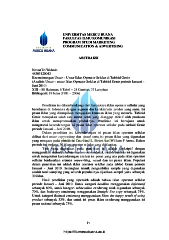 KECENDERUNGAN UNSUR-UNSUR IKLAN PRODUK OPERATOR SELULAR DI TABLOID GENIE PERIODE JANUARI-JUNI 2010 (Analisis Isi Iklan Operator Seluller Periode Januari-Juni 2010)