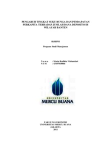 VITRIANDARI, MARIA RADHITA (2011) PENGARUH TINGKAT SUKU BUNGA DAN PENDAPATAN PERKAPITA TERHADAP JUMLAH DANA DEPOSITO DI WILAYAH BANTEN. S1 thesis, Universitas Mercu Buana Jakarta.