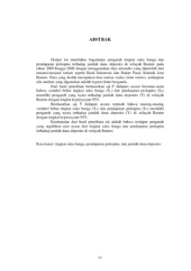 Skripsi ini membahas bagaimana pengaruh tingkat suku bunga dan pendapatan perkapita terhadap jumlah dana deposito di wilayah Banten pada tahun 2004 hingga 2008 dengan menggunakan data sekunder yang diperoleh dari instansi-instansi terkait seperti Bank Indonesia dan Badan Pusat Statistik kota Banten. Data yang diolah merupakan data runtun waktu (time series), sedangkan alat analisis yang digunakan adalah regresi linier berganda. Dari hasil penelitian berdasarkan uji F didapati secara bersama-sama bahwa variabel bebas tingkat suku bunga (X1) dan pendapatan perkapita (X2) memiliki pengaruh yang nyata terhadap jumlah dana deposito (Y) di wilayah Banten dengan tingkat kepercayaan 95%. Berdasarkan uji T didapati secara terpisah bahwa masing-masing variabel bebas tingkat suku bunga (X1) dan pendapatan perkapita (X2) memiliki pengaruh yang nyata terhadap jumlah dana deposito (Y) di wilayah Banten dengan tingkat kepercayaan 95%. Kesimpulan dari hasil penelitian ini adalah bahwa terdapat pengaruh yang signifikan atau nyata dari tingkat suku bunga dan pendapatan perkapita terhadap jumlah dana deposito di wilayah Banten.