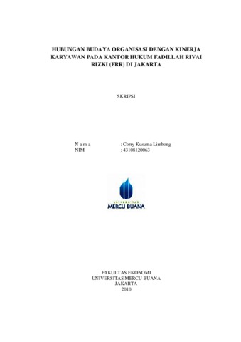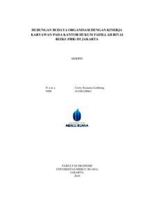 LIMBONG, CORRY KUSUMA (2011) HUBUNGAN BUDAYA ORGANISASI DENGAN KINERJA KARYAWAN PADA KANTOR HUKUM FADILLAH RIVAI RIZKI (FRR) DI JAKARTA. S1 thesis, Universitas Mercu Buana Jakarta.