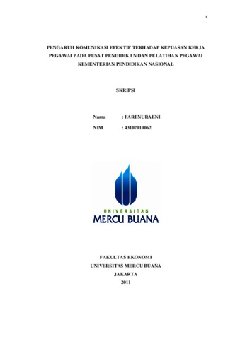 NURAENI, FARI (2011) PENGARUH KOMUNIKASI EFEKTIF TERHADAP KEPUASAN KERJA PEGAWAI PADA PUSAT PENDIDIKAN DAN PELATIHAN PEGAWAI KEMENTERIAN PENDIDIKAN NASIONAL. S1 thesis, Universitas Mercu Buana Jakarta.