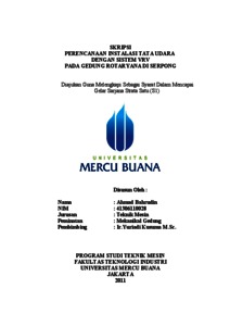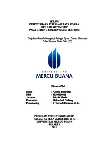 BAHRUDIN, AHMAD (2011) PERENCANAAN INSTALASI TATA UDARA DENGAN SISTEM VRV PADA GEDUNG ROTARYANA DI SERPONG. S1 thesis, Universitas Mercu Buana Jakarta.