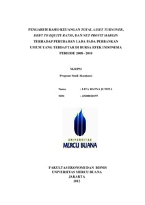 JUWITA, LITA RATNA (2012) PENGARUH RASIO KEUANGAN TOTAL ASSET TURNOVER, DEBT TO EQUITY RATIO, DAN NET PROFIT MARGIN TERHADAP PERUBAHAN LABA PADA PERBANKAN UMUM YANG TERDAFTAR DI BURSA EFEK INDONESIA PERIODE 2008 - 2010. S1 thesis, Universitas Mercu Buana Jakarta.
