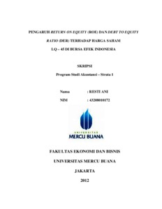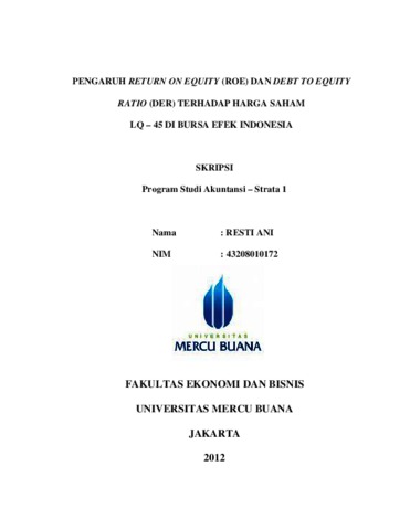ANI, RESTI (2012) PENGARUH RETURN ON EQUITY (ROE) DAN DEBT TO EQUITY RATIO (DER) TERHADAP HARGA SAHAM LQ – 45 DI BURSA EFEK INDONESIA. S1 thesis, Universitas Mercu Buana Jakarta.