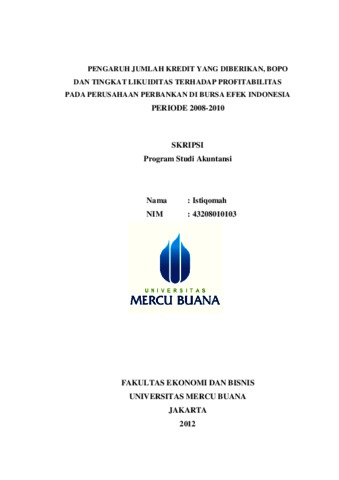 ISTIQOMAH, ISTIQOMAH (2012) PENGARUH JUMLAH KREDIT YANG DIBERIKAN, BOPO DAN TINGKAT LIKUIDITAS TERHADAP PROFITABILITAS PADA PERUSAHAAN PERBANKAN DI BURSA EFEK INDONESIA PERIODE 2008-2010. S1 thesis, Universitas Mercu Buana Jakarta.