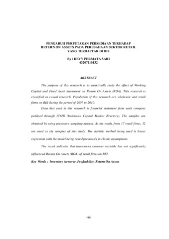 The purpose of this research is to empirically study the effect of Working Capital and Fixed Asset investment on Return On Assets (ROA). This research is classified as casual research. Population of this research are wholesale and retail firms on BEI during the period of 2007 to 2010. Data that used in this research is financial statement from each company publized through ICMD (Indonesia Capital Market directory). The samples are obtained by using purposive sampling method. As the result, from 17 retail firms, 12 are used as the samples of this study. The statistic method being used is linear regression with the model being tested previously in classic assumptions. The result indicates that inventories turnover variable has not significantly influenced Return On Assets (ROA) of retail firms on BEI.