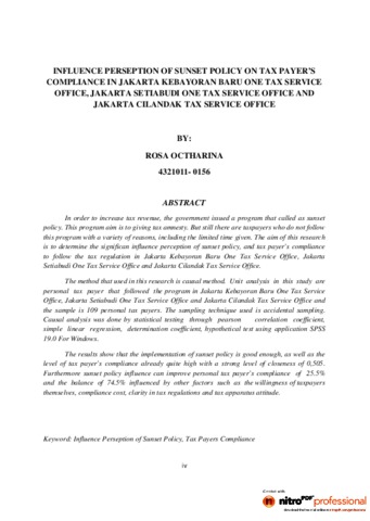 Untuk meningkatkan penerimaan Negara di bidang pajak, pemerintah telah mengeluarkan program yang disebut sunset policy. Program ini bertujuan untuk memberikan penghapusan denda pajak. Tetapi masih banyak wajib pajak yang tidak mengikuti program ini dengan berbagai alasan, termasuk keterbatasan waktu yang diberikan. Tujuan penelitian ini untuk melihat sejauh mana pengaruh signifikan persepsi sunset policy terhadap kepatuhan wajib pajak dalam melaksanakan aturan perpajakannya pada KPP Jakarta Kebayoran Baru Satu, KPP Jakarta Setiabudi Satu dan KPP Jakarta Cilandak. Metode yang digunakan dalam penelitian ini adalah metode kausal. Populasi dalam penelitian ini adalah Wajib Pajak Orang Pribadi yang mengikuti program pada KPP Jakarta Kebayoran Baru Satu, KPP Jakarta Setiabudi Satu dan KPP Jakarta Cilandak dan samplenya adalan 109 WPOP. Teknik pengambilan sample yang digunakan adalah aksidental sampling. Analisa kausal telah selesai dilakukan dengan uji statistik dengan menggunakan uji korelasi pearso, regresi linier sederhana, koefisien determinasi, uji hipotesis menggunakan applikasi SPSS 19.0 For Windows. Hasilnya menunjukkan persepsi of sunset policy sudah cukup baik, kepatuhan wajib pajak sudah cukup tinggi sebesar 0,505. Selanjutnya pengaruh sunset policy dapat meningkatkan kepatuhan wajib pajak sebesar 25.5% dan sisanya sebesar 74,5% dipengaruhi oleh faktor lain seperti kemauan membayar pajak wajib pajak itu sendiri, biaya kepatuhan, kejelasan peraturan perpajakan dan sikap dari aparat pajak