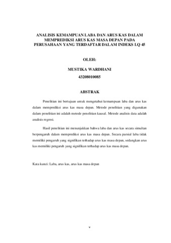 WARDHANI, MUSTIKA (2012) ANALISIS KEMAMPUAN LABA DAN ARUS KAS DALAM MEMPREDIKSI ARUS KAS MASA DEPAN PADA PERUSAHAAN YANG TERDAFTAR DALAM INDEKS LQ 45. S1 thesis, Universitas Mercu Buana Jakarta.