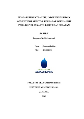 BAHTIAR, RAKHMAT (2012) PENGARUH BUKTI AUDIT, INDEPENDENSI DAN KOMPETENSI AUDITOR TERHADAP OPINI AUDIT PADA KAP DI JAKARTA BARAT DAN SELATAN. S1 thesis, Universitas Mercu Buana Jakarta.