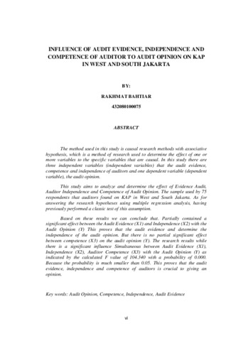 The method used in this study is causal research methods with associative hypothesis, which is a method of research used to determine the effect of one or more variables to the specific variables that are causal. In this study there are three independent variables (independent variables) that the audit evidence, competence and independence of auditors and one dependent variable (dependent variable), the audit opinion. This study aims to analyze and determine the effect of Evidence Audit, Auditor Independence and Competence of Audit Opinion. The sample used by 75 respondents that auditors found on KAP in West and South Jakarta. As for answering the research hypotheses using multiple regression analysis, having previously performed a classic test of this assumption. Based on these results we can conclude that. Partially contained a significant effect between the Audit Evidence (X1) and Independence (X2) with the Audit Opinion (Y) This proves that the audit evidence and determine the independence of the audit opinion. But there is no partial significant effect between competence (X3) on the audit opinion (Y). The research results while there is a significant influence Simultaneous between Audit Evidence (X1), Independence (X2), Auditor Competence (X3) with the Audit Opinion (Y) as indicated by the calculated F value of 104.340 with a probability of 0.000. Because the probability is much smaller than 0.05. This proves that the audit evidence