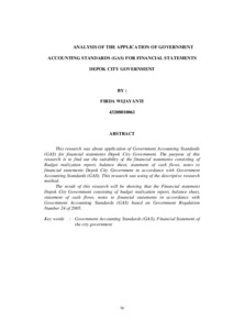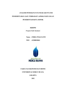 WIJAYANTI, FIRDA (2012) ANALISIS PENERAPAN STANDAR AKUTANSI PEMERINTAHAN (SAP) TERHADAP LAPORAN KEUANGAN PEMERINTAH KOTA DEPOK. S1 thesis, Universitas Mercu Buana Jakarta.