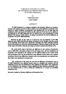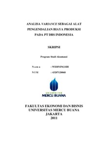 WIDININGSIH, WIDININGSIH (2012) ANALISA VARIANCE SEBAGAI ALAT PENGENDALIAN BIAYA PRODUKSI PADA PT. DBS INDONESIA. S1 thesis, Universitas Mercu Buana Jakarta.