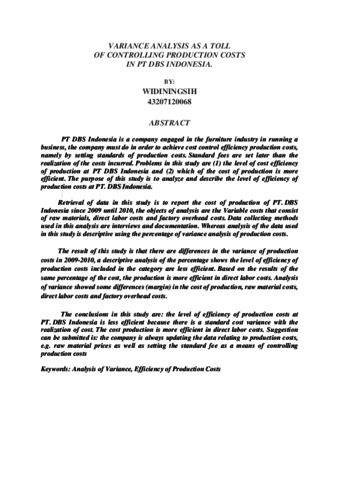 PT DBS Indonesia is a company engaged in the furniture industry in running a business, the company must do in order to achieve cost control efficiency production costs, namely by setting standards of production costs. Standard fees are set later than the realization of the costs incurred. Problems in this study are (1) the level of cost efficiency of production at PT DBS Indonesia and (2) which of the cost of production is more efficient. The purpose of this study is to analyze and describe the level of efficiency of production costs at PT. DBS Indonesia. Retrieval of data in this study is to report the cost of production of PT. DBS Indonesia since 2009 until 2010, the objects of analysis are the Variable costs that consist of raw materials, direct labor costs and factory overhead costs. Data collecting methods used in this analysis are interviews and documentation. Whereas analysis of the data used in this study is descriptive using the percentage of variance analysis of production costs. The result of this study is that there are differences in the variance of production costs in 2009-2010, a descriptive analysis of the percentage shows the level of efficiency of production costs included in the category are less efficient. Based on the results of the same percentage of the cost, the production is more efficient in direct labor costs. Analysis of variance showed some differences (margin) in the cost of production, raw material costs, direct labor costs and factory overhead costs. The conclusions in this study are: the level of efficiency of production costs at PT. DBS Indonesia is less efficient because there is a standard cost variance with the realization of cost. The cost production is more efficient in direct labor costs. Suggestion can be submitted is: the company is always updating the data relating to production costs, e.g. raw material prices as well as setting the standard fee as a means of controlling production costs