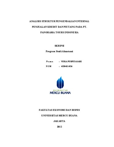 PUSPITSARI, VERA (2012) ANALISIS STRUKTUR PENGENDALIAN INTERNAL PENJUALAN KREDIT DAN PIUTANG PADA PT. PANORAMA TOURS INDONESIA. S1 thesis, Universitas Mercu Buana Jakarta.