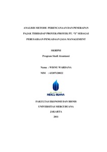 WARDANA, WISNU (2012) ANALISIS METODE PERENCANAAN DAN PENERAPAN PAJAK TERHADAP PROYEK-PROYEK PT. “X” SEBAGAI PERUSAHAAN PENGADAAN JASA MANAGEMENT. S1 thesis, Universitas Mercu Buana Jakarta.