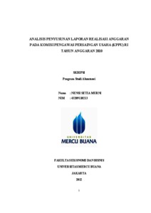 MURNI, NENSI SETIA (2012) ANALISIS PENYUSUNAN LAPORAN REALISASI ANGGARAN PADA KOMISI PENGAWAS PERSAINGAN USAHA (KPPU) RI TAHUN ANGGARAN 2010. S1 thesis, Universitas Mercu Buana Jakarta.