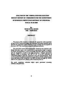 The purpose of this research is to determine the appropriate of the preparation of reports on the Commission's budget with Government Accounting Standards and to determine the performance of the Commission to use its budget has been prepared in fiscal year 2010 . This research was using of the deskriptif qualitative. The result of this research will be showing that Commission has compiled a wellBudget Realization report, when viewed from the reporting date budget, recognition of revenues and expenditures, as well as the Budget Realization Report in accordance with the classification set forth in the budget document or Petunjuk Operasional Kegiatan (POK) in accordance with SAP PP No. 71 in 2010. Realization of Consolidated Budget to reflect the Commission's role in the 2010 performance , which can be seen from the amount of expenditure in accordance with the realization of the vision and mission of the Commission, the DPH can realize its budget by 90.98%, DKP 87.23% , DA at 85.54 %, Humas of 89.52% and PI of 98.21%.