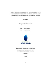 SAPUTRO, BAYU (2012) PENGARUH INDEPENDENSI, KOMPETENSI DAN PROFESIONAL TERHADAP KUALITAS AUDIT. S1 thesis, Universitas Mercu Buana Jakarta.