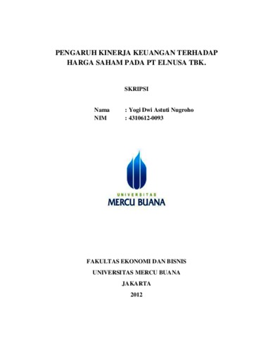 NUGROHO, YOGI DWI ASTUTI (2012) PENGARUH KINERJA KEUANGAN TERHADAP HARGA SAHAM PADA PT ELNUSA TBK. S1 thesis, Universitas Mercu Buana Jakarta.
