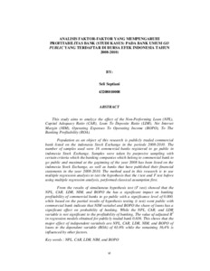 SEPTIANI, SELI (2012) ANALISIS FAKTOR-FAKTOR YANG MEMPENGARUHI PROFITABILITAS BANK (STUDI KASUS: PADA BANK UMUM GO PUBLIC YANG TERDAFTAR DI BURSA EFEK INDONESIA TAHUN 2008-2010). S1 thesis, Universitas Mercu Buana Jakarta.