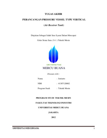 JUNIARTO, JUNIARTO (2012) PERANCANGAN PRESSURE VESSEL TYPE VERTICAL (Air Receiver Tank). S1 thesis, Universitas Mercu Buana Jakarta.