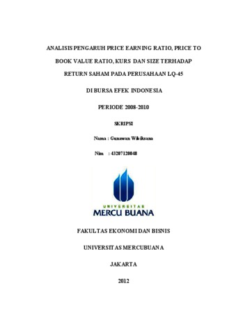 WIBIKSANA, GUNAWAN (2012) ANALISIS PENGARUH PRICE EARNING RATIO, PRICE TO BOOK VALUE RATIO, KURS DAN SIZE TERHADAP RETURN SAHAM PADA PERUSAHAAN LQ-45 DI BURSA EFEK INDONESIA PERIODE 2008-2010. S1 thesis, Universitas Mercu Buana Jakarta.