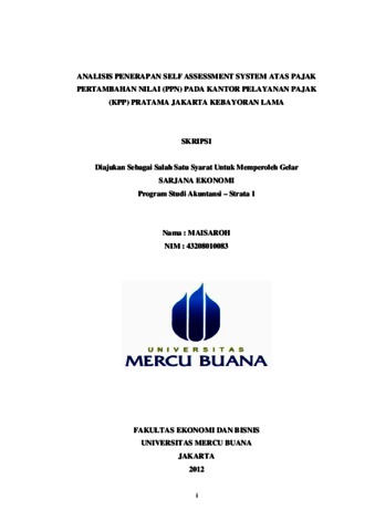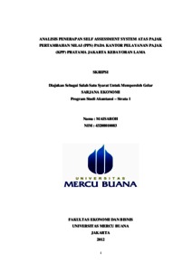 MAISAROH, MAISAROH (2012) ANALISIS PENERAPAN SELF ASSESSMENT SYSTEM ATAS PAJAK PERTAMBAHAN NILAI (PPN) PADA KANTOR PELAYANAN PAJAK (KPP) PRATAMA JAKARTA KEBAYORAN LAMA. S1 thesis, Universitas Mercu Buana Jakarta.