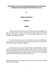 his study aims to determine the effect of activities such as accounts receivable turnover ratio, total asset turnover, inventory turnover, working capital turnover with economic profitability. This study took a sample to 12 food and beverage companies that list on the Indonesia Stock Exchange in 2008 - 2010. The results indicate that turnover has no significant effect on economic Rentabillitas, total asset turnover has no significant effect on the economy Profitability, Inventory turnover has no significant effect on the economy Profitability From the results of the t test for working capital turnover significantly affect the economic profitability for the SIG (0.043) is smaller than 0.05, while the ratio of other activities such as accounts receivable turnover, total asset turnover and inventory turnover has no effect. The author suggests that stakeholders, especially investors who will invest in food and beverage companies before making a decision, should focus on factors lain.
