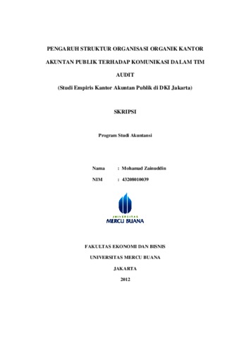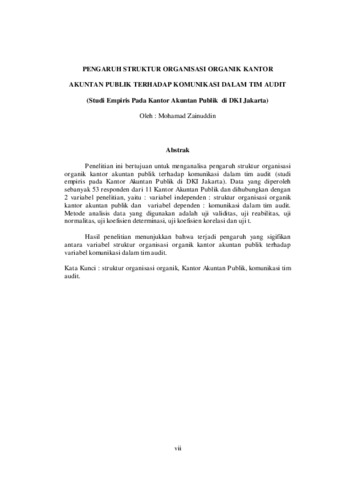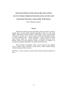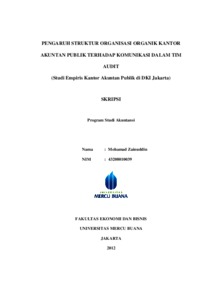 | Uncontrolled Keywords: | Struktur organisasi organik, Kantor akuntan publik, Komunikasi tim audit |