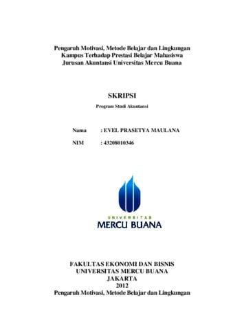 MAULANA, EVEL PRASETYA (2012) PENGARUH MOTIVASI, METODE BELAJAR DAN LINGKUNGAN KAMPUS TERHADAP PRESTASI BELAJAR MAHASISWA JURUSAN AKUNTANSI UNIVERSITAS MERCU BUANA. S1 thesis, Universitas Mercu Buana Jakarta.
